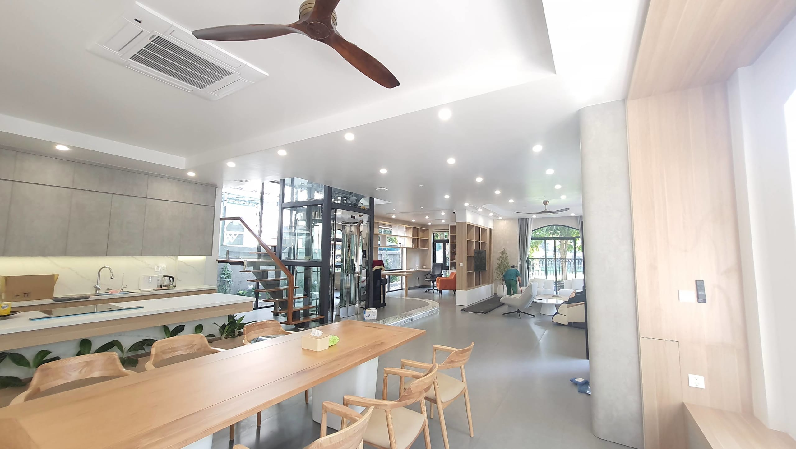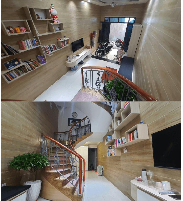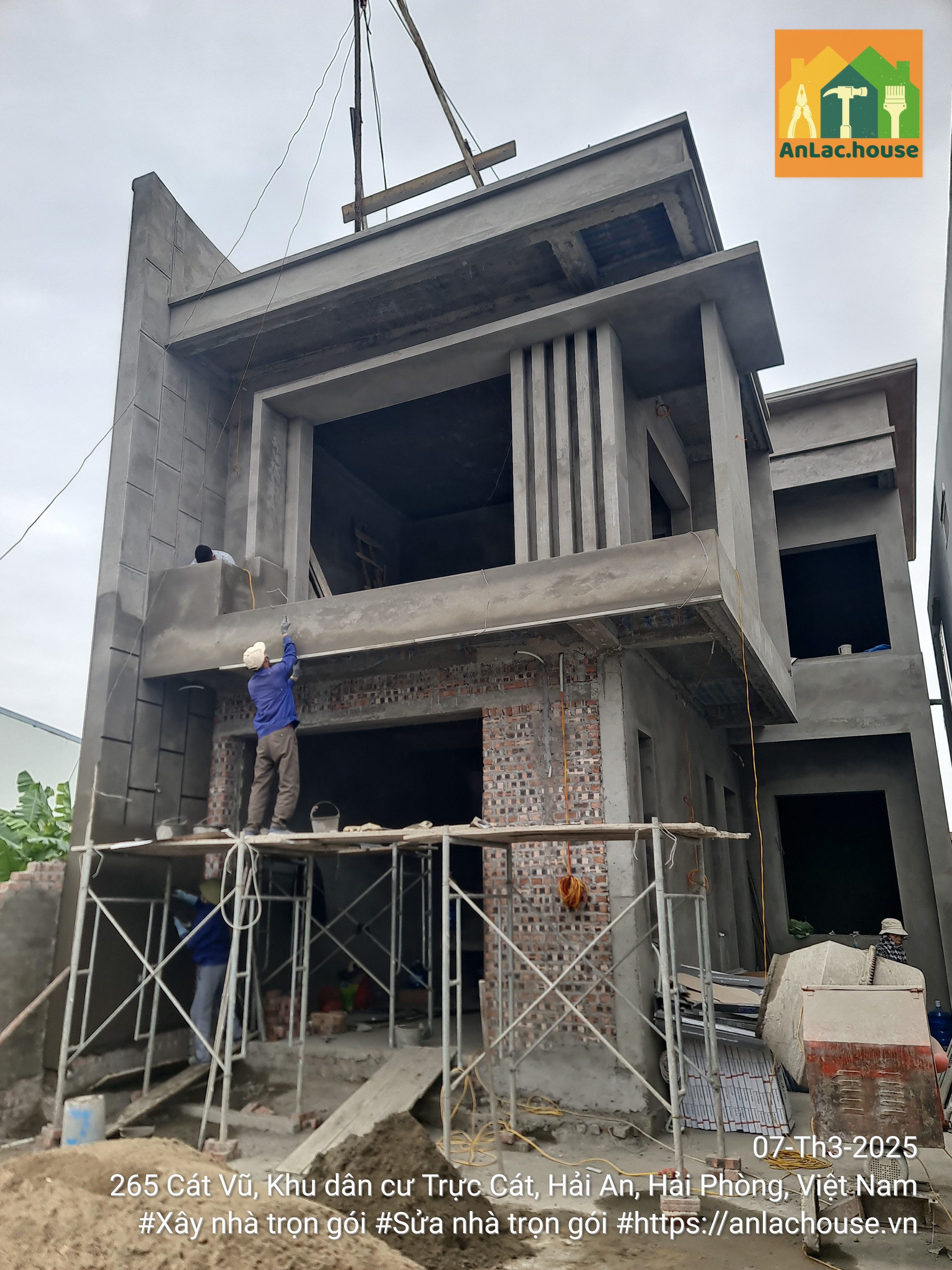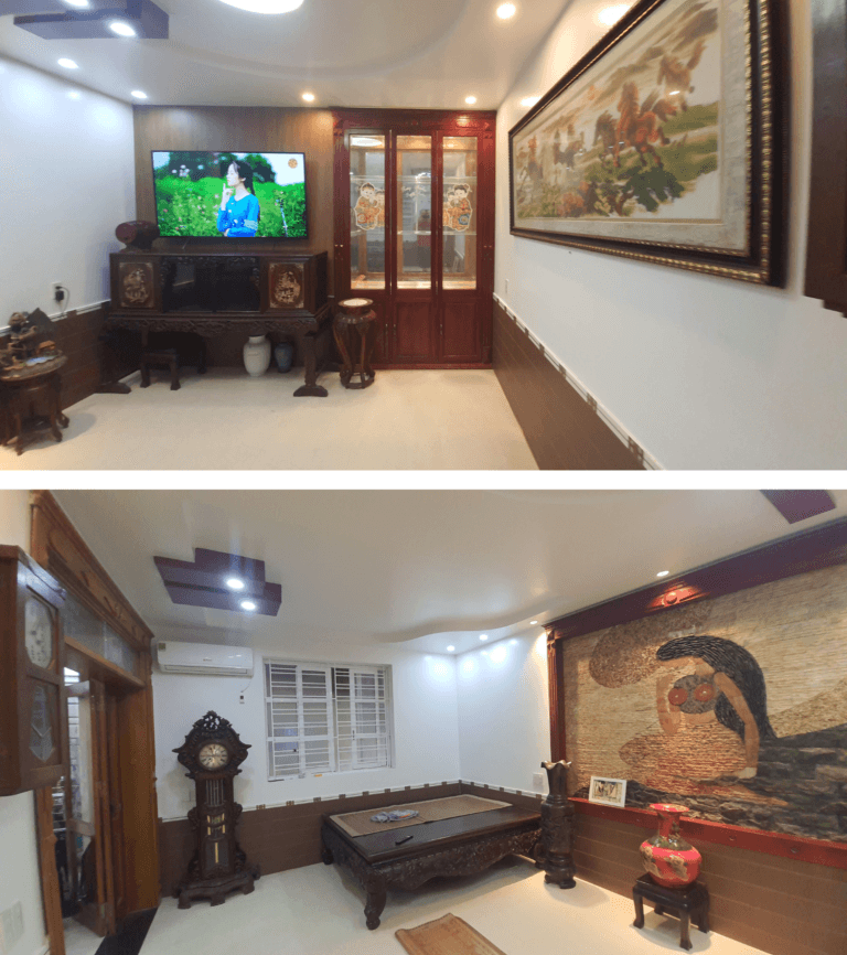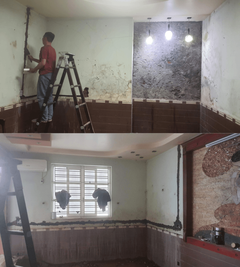 Hạng mục thi công: Cải tạo toàn diện, tôn nền, lắp đặt mới hệ thống điện nước, sơn bả nội ngoại thất, sơn lan can sắt, chống thấm mái; thiết kế và thi công nội thất.