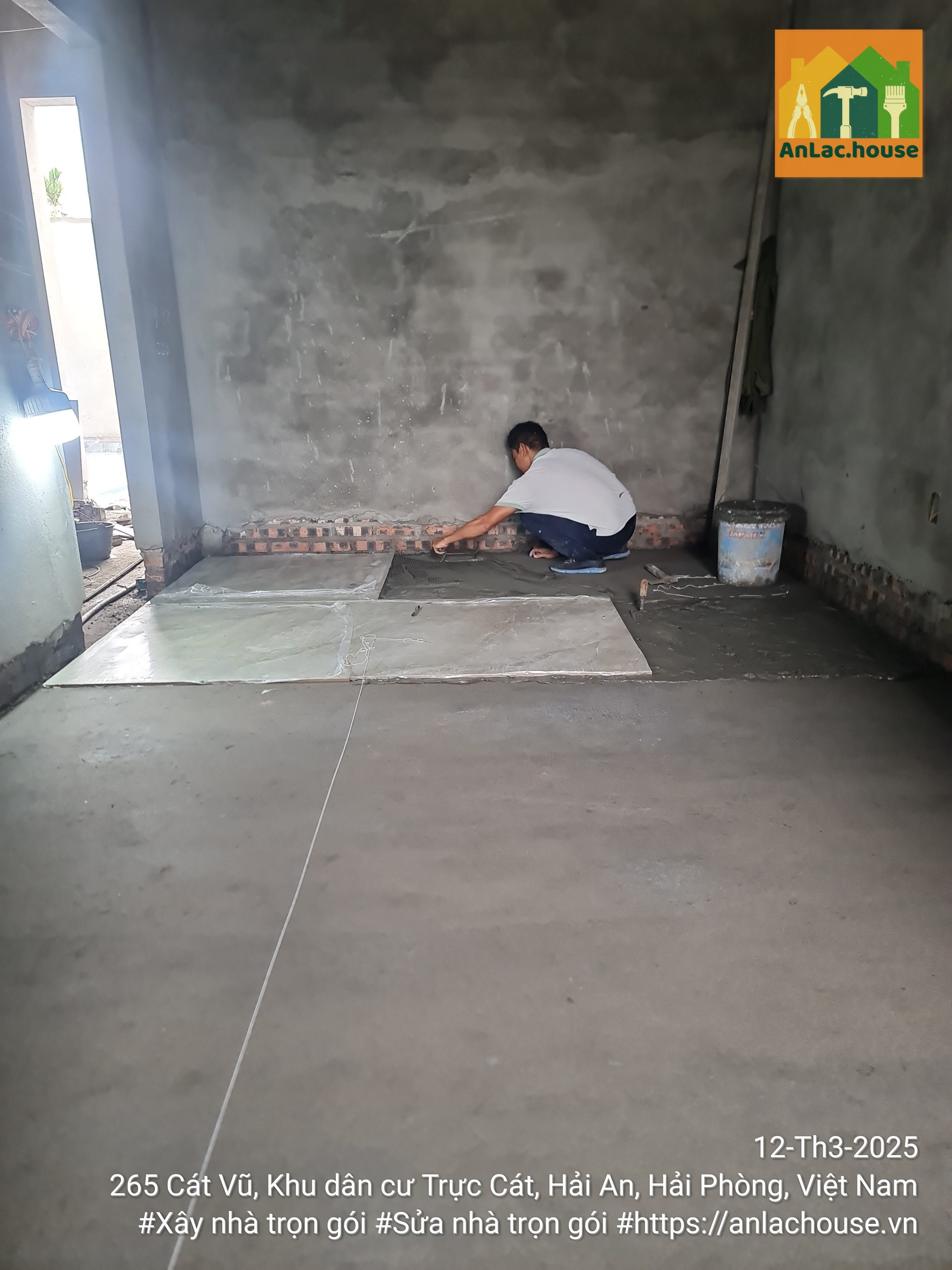 Hạng mục thi công: Giám sát hoàn thiện toàn bộ công trình. Thi công trực tiếp hạng mục: phá dỡ cải tạo công năng, xây trát ngăn phòng, ốp lát, sơn bả, trần thạch cao, chống thấm (nvs, ban công, sân thượng), đá tự nhiên (tam cấp, thang, sảnh)